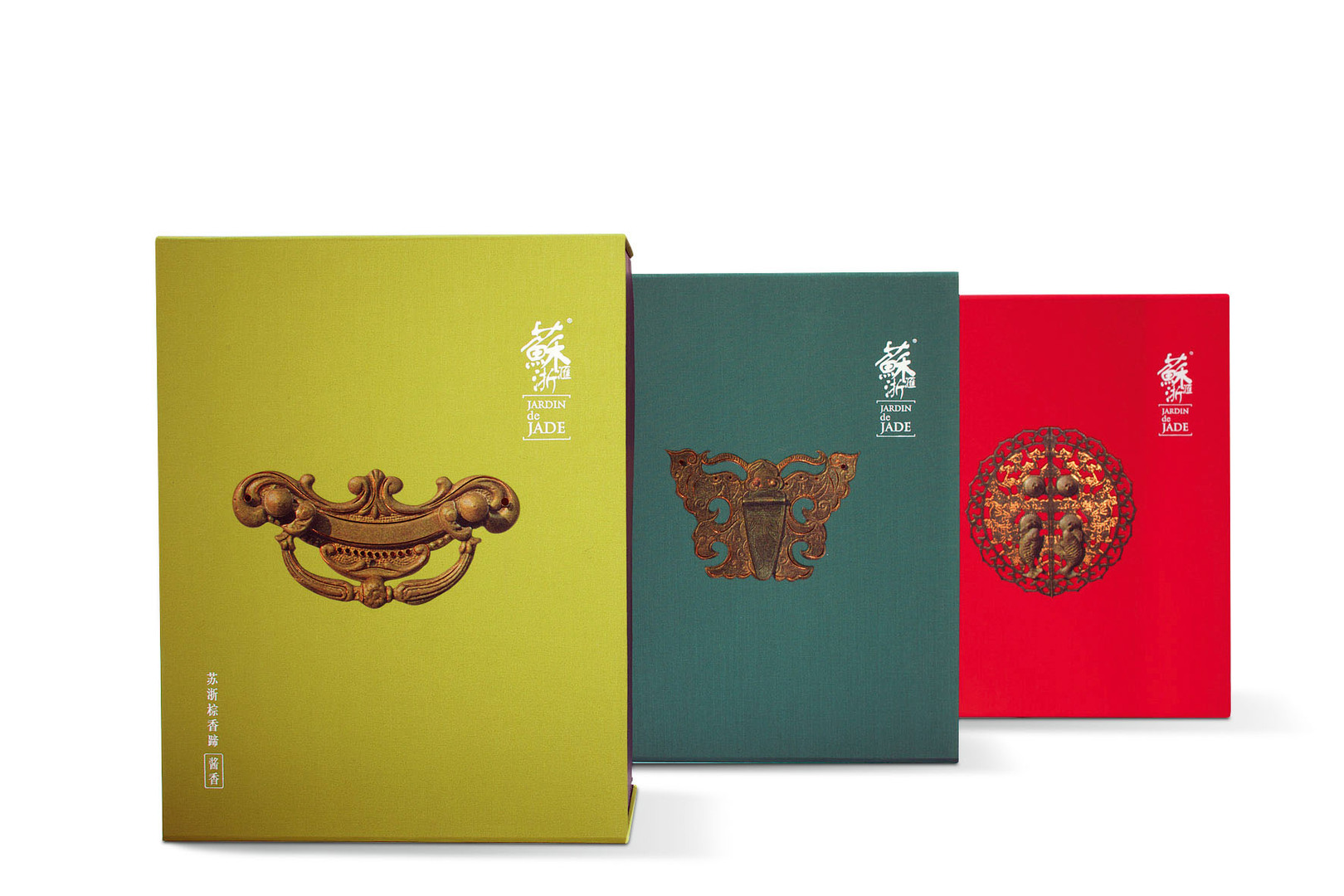 Exquisite Chinese locking plates are the key visual focus of this gift box. The protruding paper has a three-dimensional yet delicate appearance. Locking plates are special parts of traditional doors in China and form the basis of the appealing design of the box’s opening. With three different colours, the packing cloth is tied with straw, presenting an authentic flavour. The harmonious colour scheme echoes the traditional shades of light green, dark green and red – colours that are favoured in China. The diagonal print from bottom left to top right lends the food packaging a contemporary elegance.