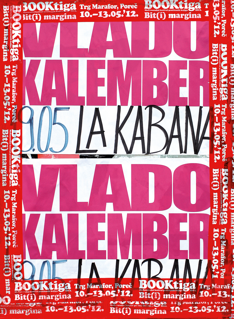The poster advertises an international fair for new and second-hand books that aims to promote the love of reading books and thus popularise books again. The theme of the festival in 2012 was the marginalisation of libraries in modern urban environments. Since such a non-profit festival is usually shadowed by other more popular, commercial and attended events, and since the festival promotes the value of using second-hand items, it seemed logical not to buy dedicated ad space, but instead to use the ad spaces taken by other, more profitable events. Thus, an attention-grabbing ribbon was designed and applied around the edges of already put-up posters, creating a visual frame that symbolises the marginality of the book fair. This way the festival loudly makes its position regarding other events clear, however, without wanting to cancel or cover them, but simply by becoming an integral part of them. The BOOKtiga Festival presents itself as a margin of the central event, as the margin has always been a place that marks the important things.