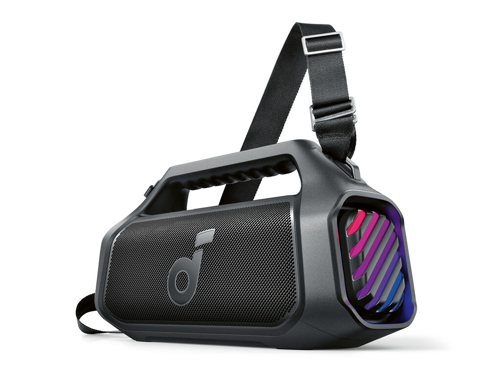 The Boom 2 Plus communicates its sound qualities through a housing that conveys power and dynamics with RGB lighting and an angular silhouette.