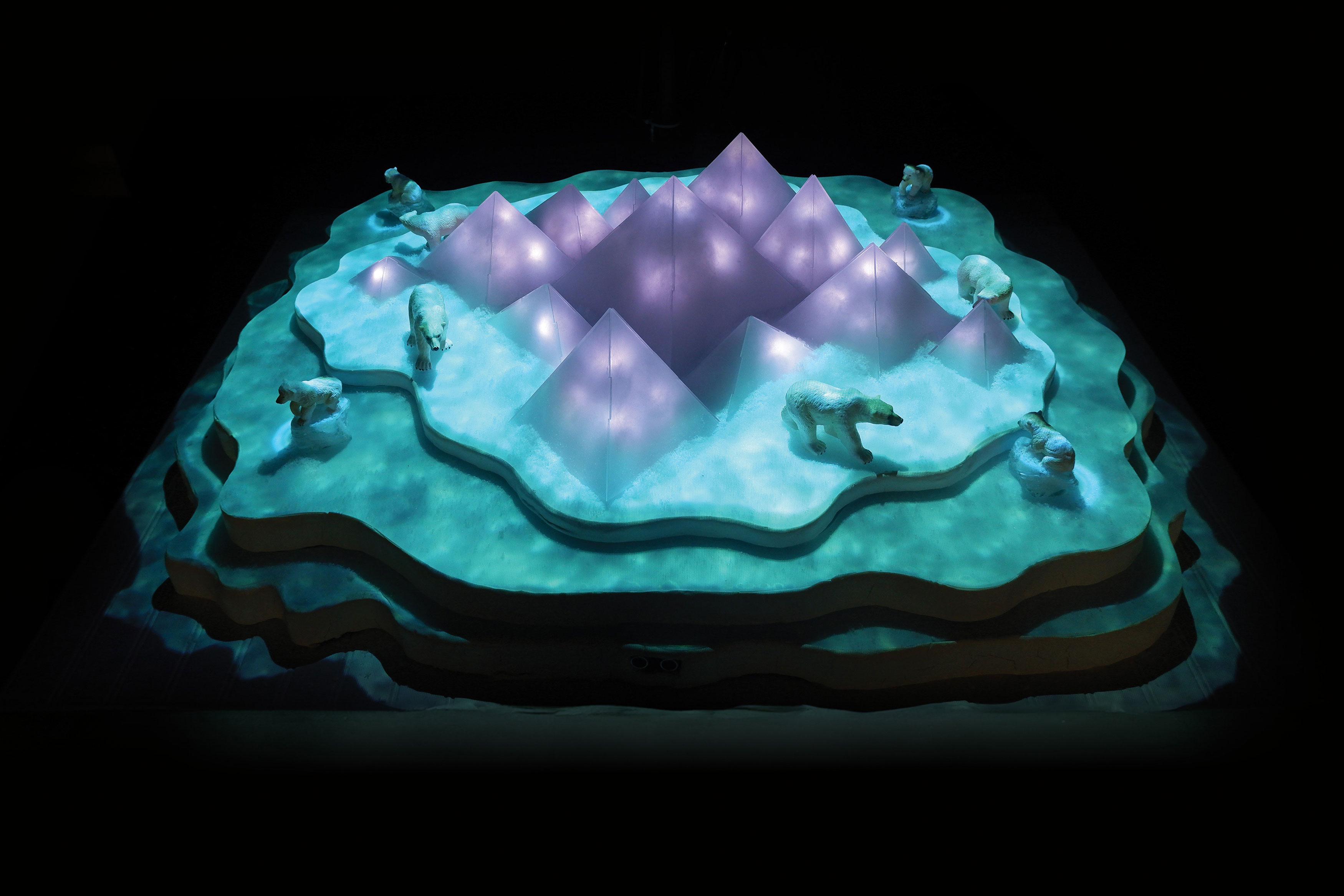 BOREALIS uses light and motion to illustrate a journey toward sustainability and collective responsibility. It transitions from serene Northern Lights to an intensified colour-changing display representing active sonar sensors, and culminates in an interactive section where visitors pick up polar bears to trigger melting and burning animations. This narrative explores the nexus between humans and environment, prompting reflection on urgent climate issues.
