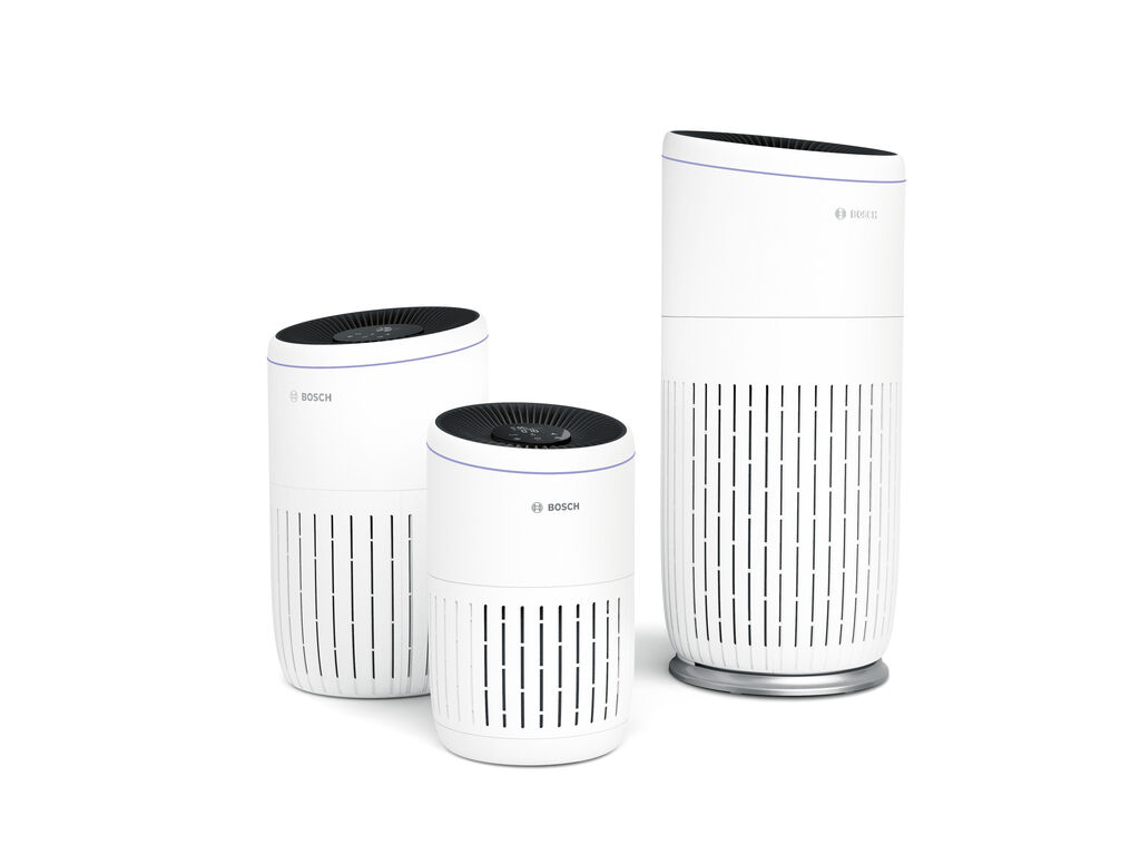 The air purifiers of the Bosch Air Series rely on a clear design language and intuitive touch operation. Thanks to their unobtrusive design and slim shape, the units blend discreetly into any living space. The centrally placed LED touch display is integrated into the slightly angled top and tilts towards the user. “This makes it look inviting and also offers enhanced comfort when touched with the fingers,” the jury was impressed. Another feature is that the air quality is automatically detected and displayed in colour via the 360-degree illuminated ring. Thus, the user can see at first glance what the air quality in the room is like.