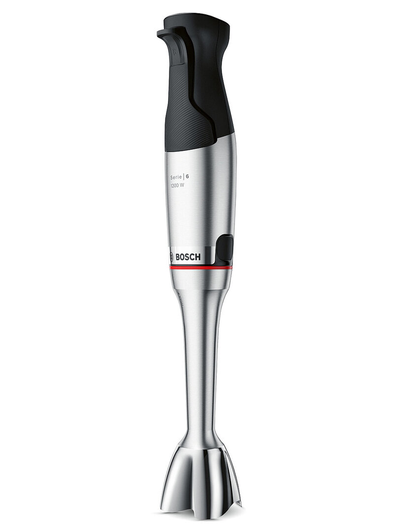 The hand blender in the BOSCH ErgoMaster Series 6 was developed with ergonomics in mind. A longer lever counteracts hand fatigue. The speed can be controlled intuitively in various holding positions. “The product’s user-friendly handle with non-slip surface and switch-on lock blends in perfectly with the stainless-steel housing. The applied diagonal pattern ensures a good grip,” the jury found. All attachments can be removed for cleaning and storage with a simple click. Thanks to the 1,200-watt motor and the ceramic coupling, the appliance can be used with numerous accessories such as a chopper, mixer or whisk.
