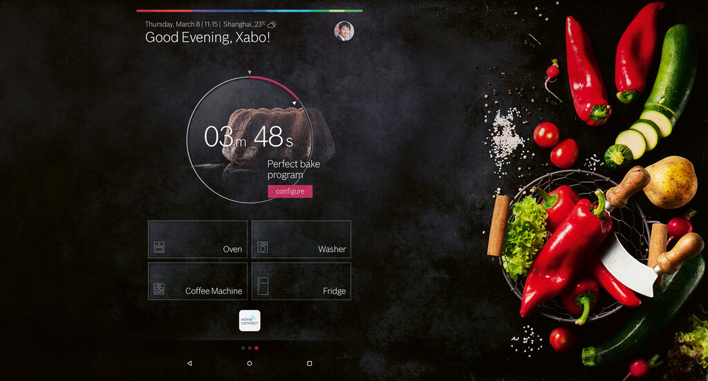 This smart kitchen projector enables inspiring new types of interaction and an extensive integration of digital media into the kitchen work area. Based on a well-thought-out design, it is as elegant as it is easy to clean and perfectly adapted to kitchen counter environments. Considerably larger than a familiar interface, it is convenient and easy to operate – with ample, flexible and versatile possibilities of use.