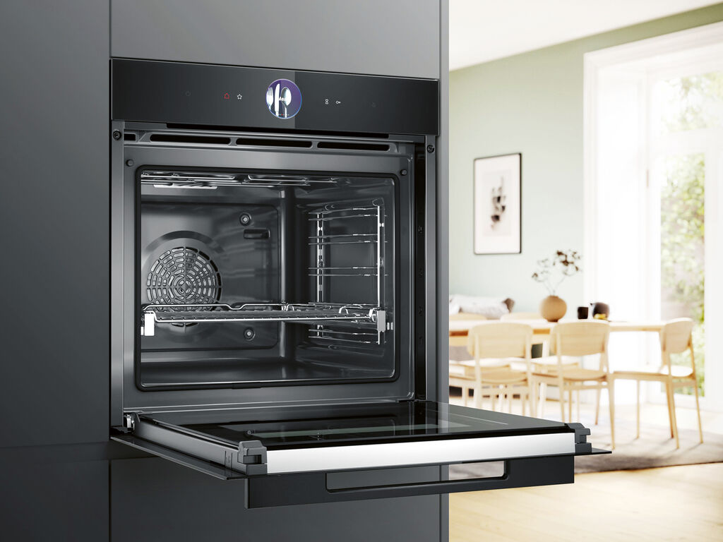 The BOSCH Series 8 Accent Line Built-in Oven (TFT Plus) features a TFT touch display that clearly shows program settings and recipes via large images. The Perfect Steam function uses sensors to measure humidity and temperature for optimal results. With the Steam Plus function, vegetables are cooked gently. The Home Connect app can be used for centralised control and to receive push notifications. “The modern design language blends harmoniously into any modern kitchen environment with the dark glass front and elegant details. The central digital control ring guides the user through the preparation process using images and text,” the jury reported.