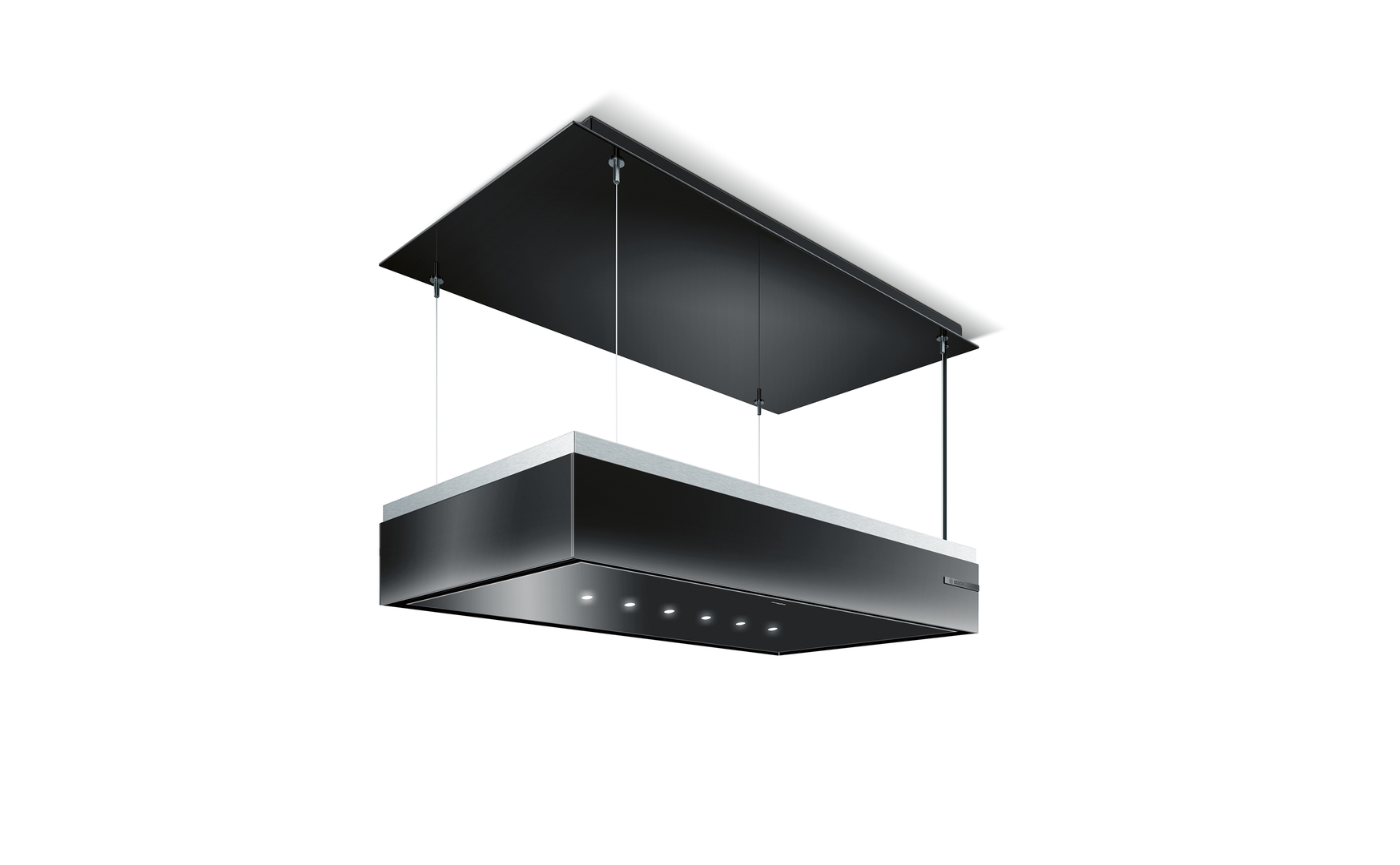 The extractor hood with lift function is equipped with a hob-based hood control including voice control. A CleanAir Plus pollen filter and a PerfectAir air quality sensor are also included. The height of the extractor hood can be adapted individually to the user and adjusted to up to five positions. The tinted glass with its discreet transparency gives the hood a floating appearance and creates an exciting material contrast in combination with the brushed stainless steel.