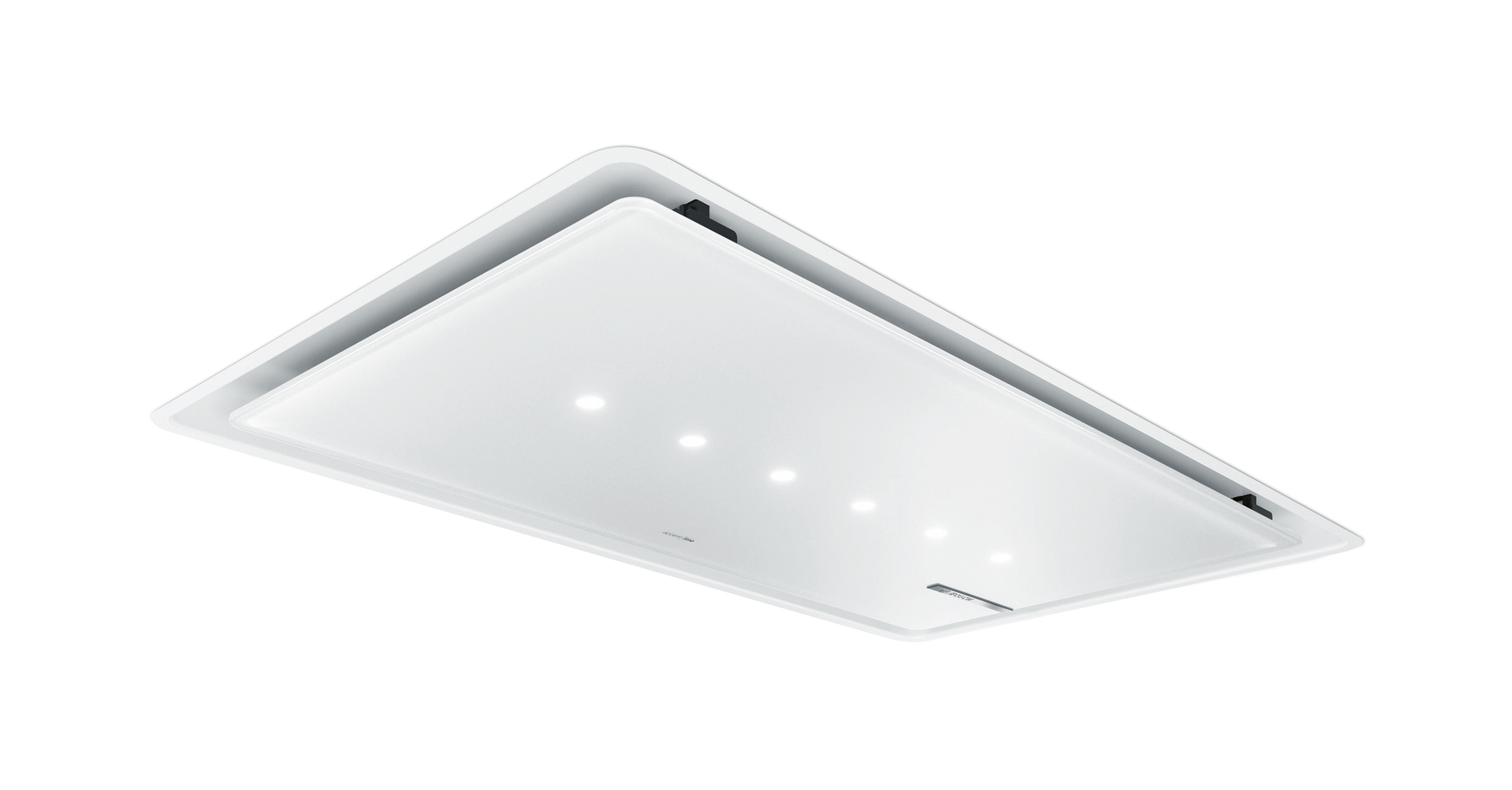 The extractor hood from the | 8 accent line series is a stylish and space-saving solution for open kitchens. The hood can be easily controlled via a remote control, the Home Connect App or via voice control. The light temperature can be adjusted via app as desired. The hood fits perfectly into white kitchen ceilings and has a discreet appearance thanks to its clear and simple design language. Large radii underline the friendly and reduced impression.