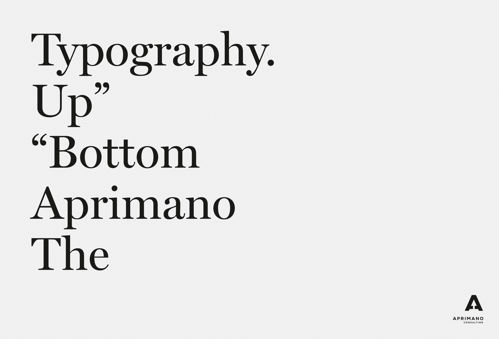 The Bottom Up typographic design was commissioned by Aprimano Consulting, a strategy consultancy for managers, the philosophy of which is to “be dif-ferent and make the thinkable possible”. True to this maxim, the typography reverses the usual reading direction from top to bottom. The design can be used in diverse media and applications. Going consistently against the grain, the typography compels the reader to rethink while reading and provides a vivid illustration of creative thinking.
