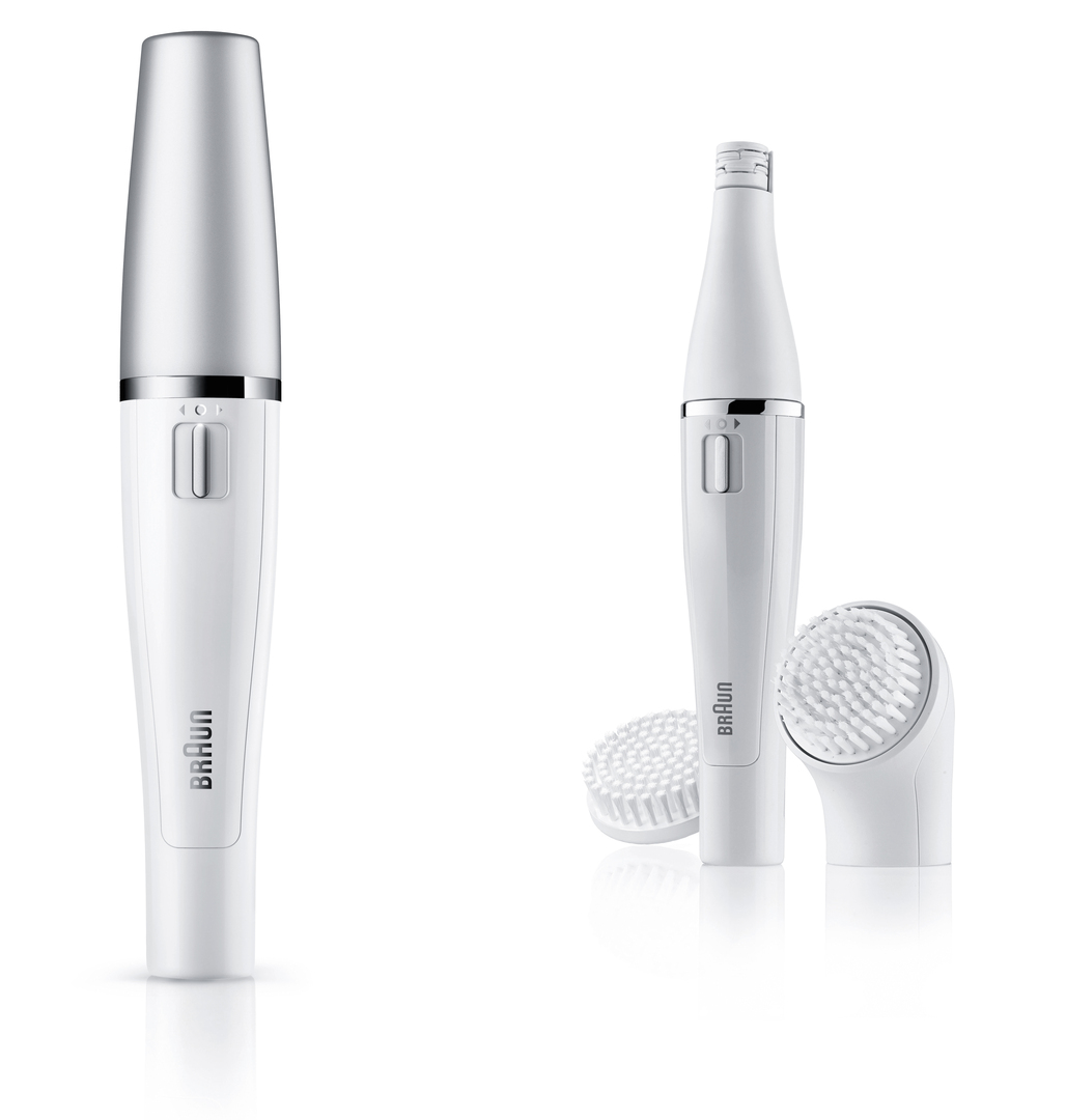 The facial epilator Braun Face gently removes very fine hair by the root on upper lip and eyebrows. Its sleek and compact design allows handling it like mascara. The extra-slim, precise head is arranged in a free and perpendicular position to the device so that the area to be epilated is clearly visible. By clockwise and counter-clockwise rotation the hair is easily captivated and removed. An additional brush head cleanses and exfoliates the skin.