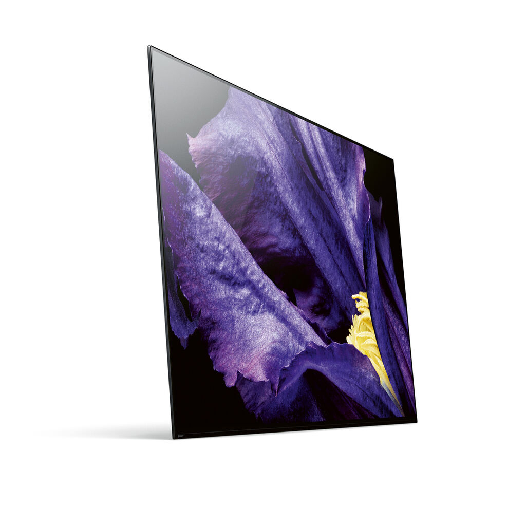 The BRAVIA A9F OLED TVs combine excellent image quality with impressive sound directly emitted from the screen. This is done using Acoustic Surface Audio+ technology which produces sound through screen vibrations. In this way, audio and visual are both emitted from a single source. The overall design appears just as homogeneous, as the screen is supported by a stand with integrated speaker at the backside, so that no additional element is required for the sound.