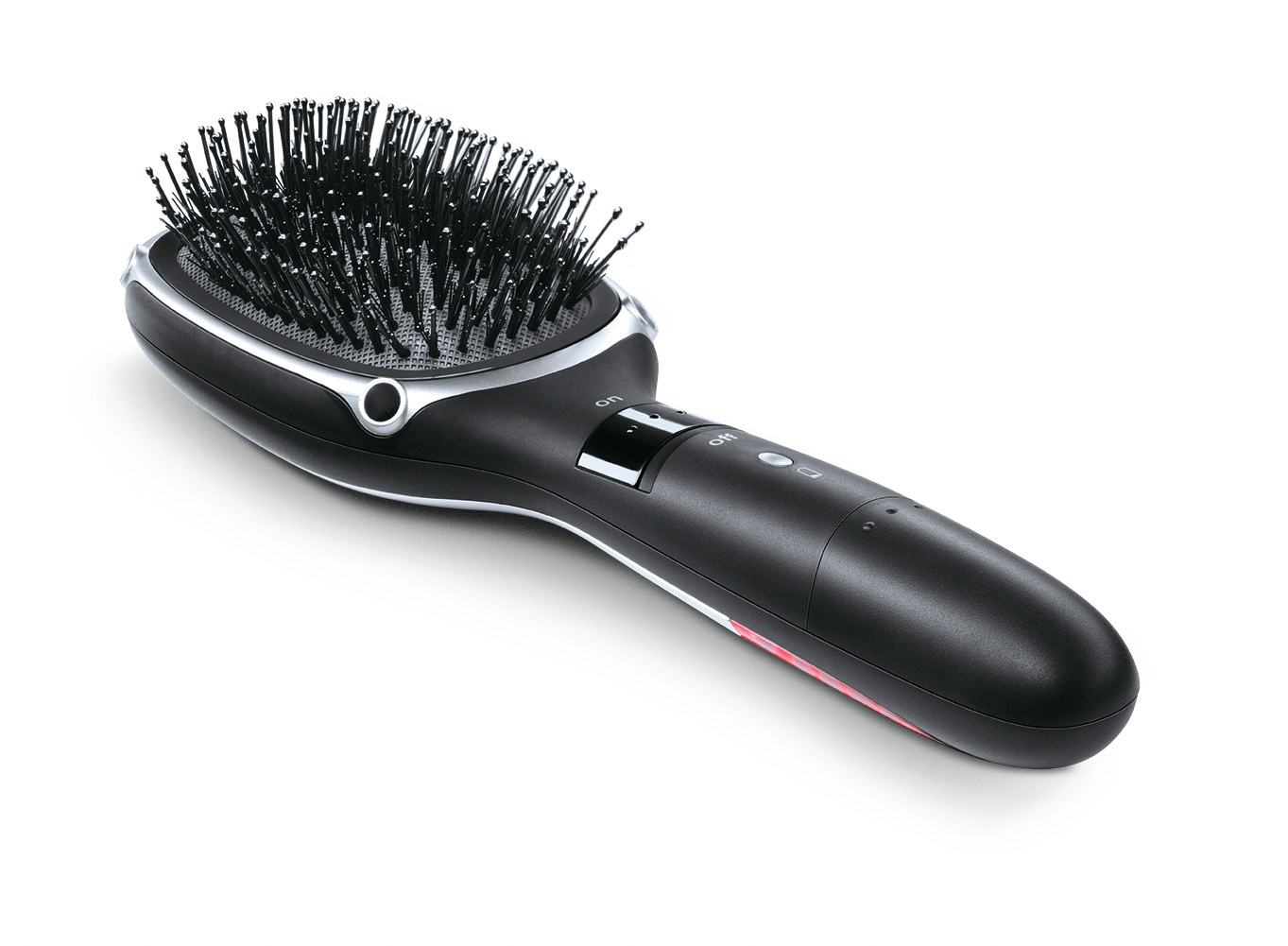 With the help of a special Quattro Ion technology, hair is electrostatically charged less, thus giving it a smooth and healthy look. The circular red LED dis-play indicates that the ion mode is activated. Different bristles seize the hair efficiently and enable soft styling. The anthracite and silver brush works wirelessly, and the brush cushion pad is easy to remove for cleaning.