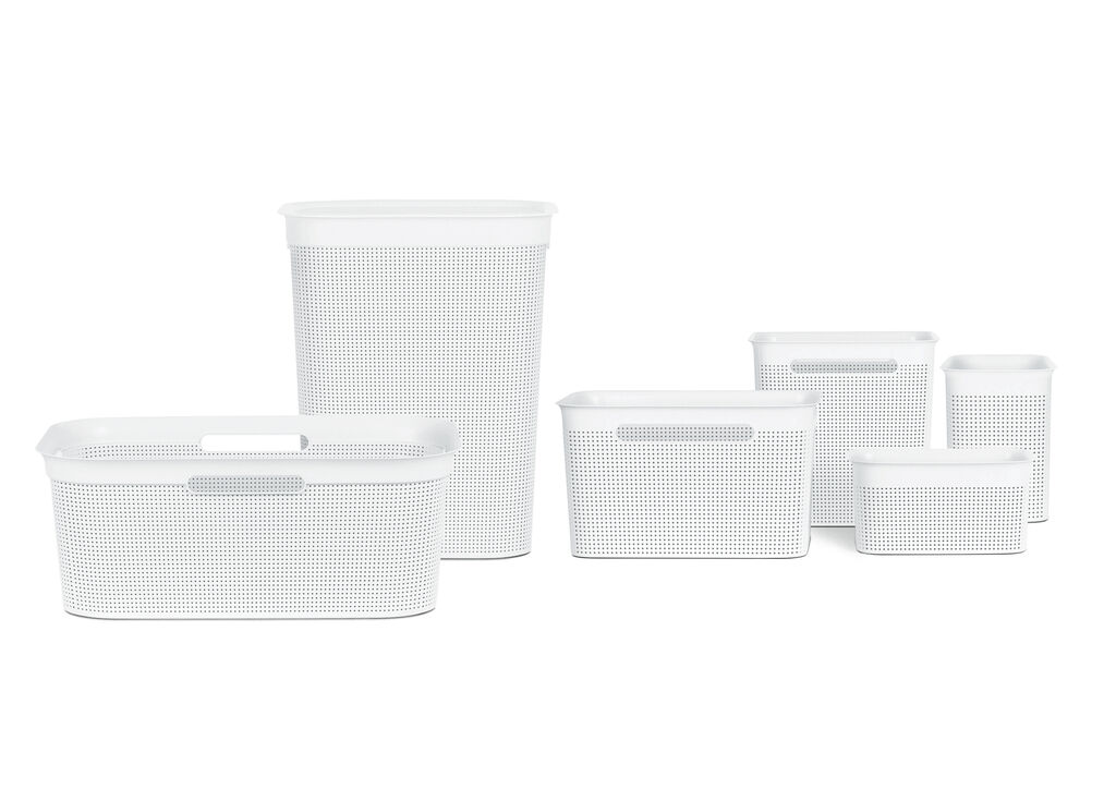 Inspired by perforated metal, the appearance of these storage boxes showcases a timeless look. The discreet design vocabulary blends into different home styles and is also aimed to appeal to users of all ages. BRISEN follows the idea of designing stylish boxes of well thought-out sizes so that they can be used both for storage and laundry. There is a choice of boxes with 4.5, 7, 16 and 18 litres, as well as a 41-litre laundry basket and a 50-litre laundry hamper.
