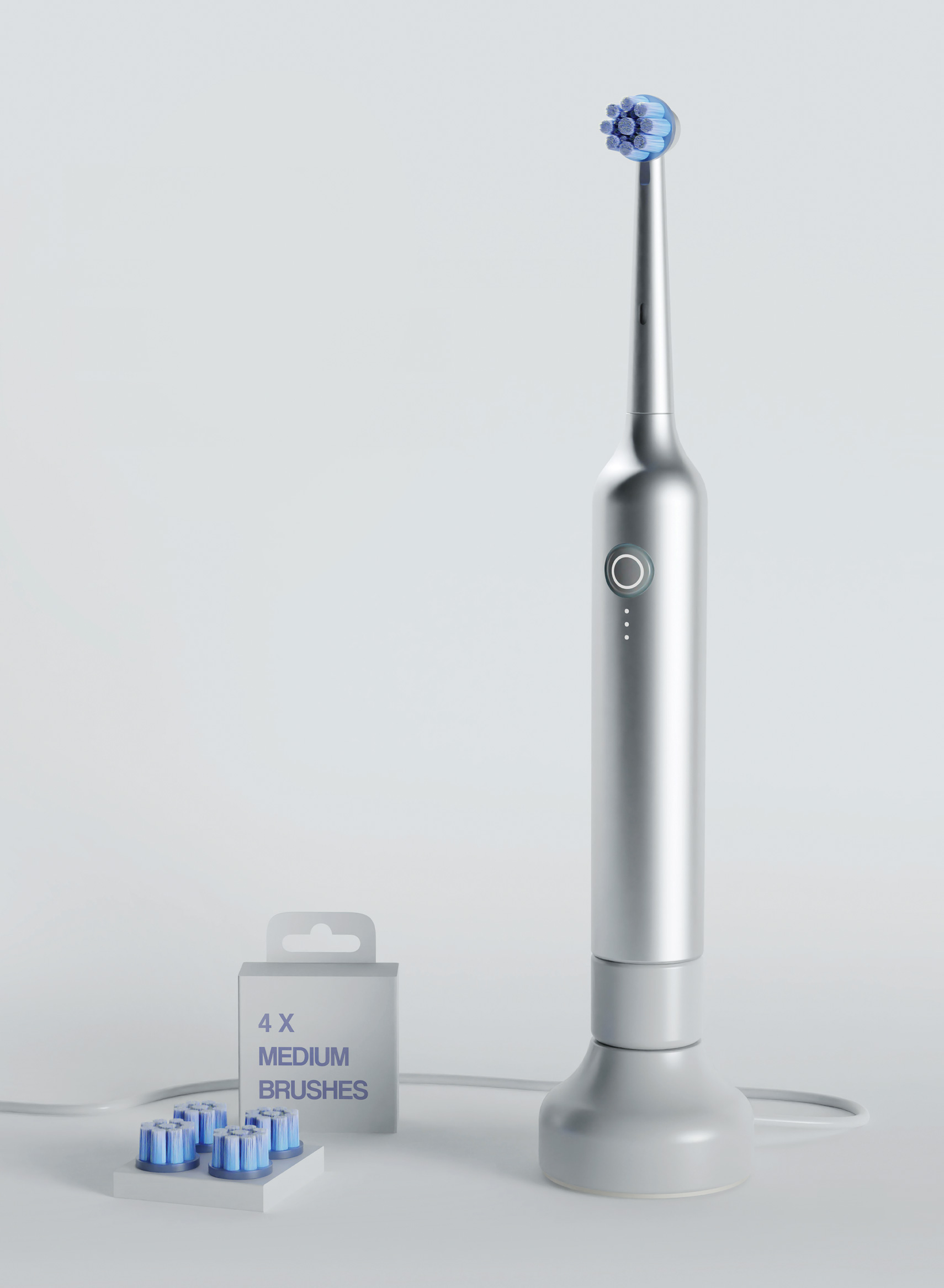 Bristly is a sleek and affordable electric toothbrush that reduces plastic waste by up to 75% by only replacing the bristles. Its compact form minimises materials, manufacturing resources, costs, and carbon footprint; a durable metal body ensures long-term use. Its toothbrush head uses a snap-in mechanism for easy removal and attachment of bristles, with colour-coded bristles of various hardness available.