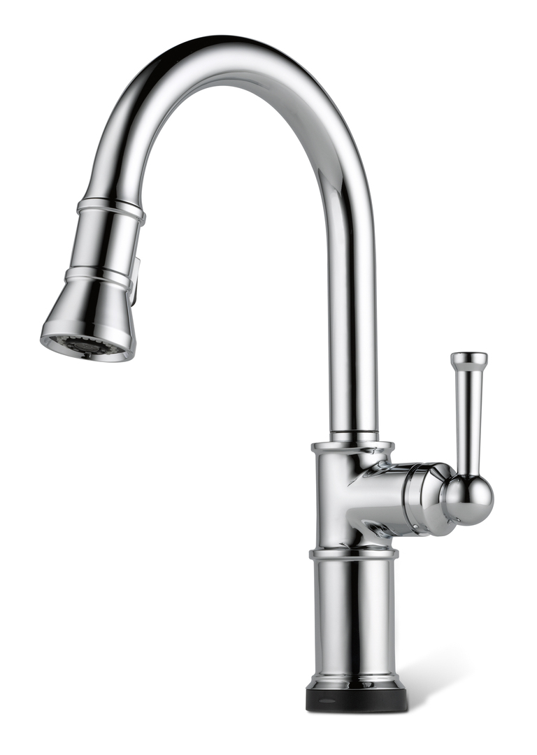 The design of the Brizo Artesso kitchen tap series is inspired by the metal works of the early 20th century and combines hand crafted elements with modern aesthetics. The series comprises a single-lever mixer with or without shower head, a two-handle bridge-design tap and a soap dispenser. The single-lever mixer with shower head is available with SmartTouch technology, by means of which the water flow can be activated by touching the tap anywhere on the spout, hub or handle.