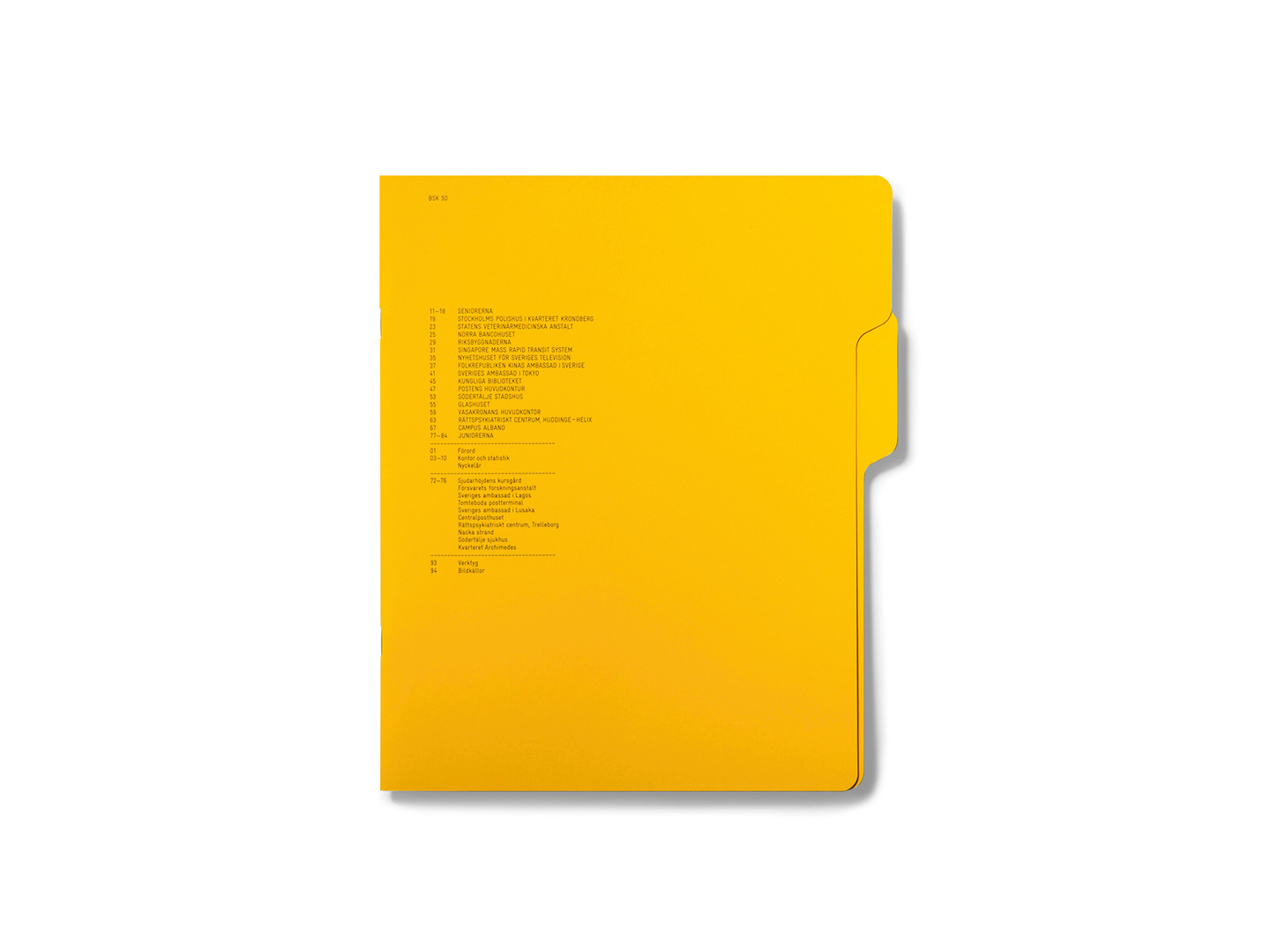 In this anniversary booklet, which celebrates 50 years of the Swedish architectural office BSK, it is the employees themselves who recall the company history. In light of partially drastic historical events that the office had to face, it thus evokes the image and notion of “pragmatic survival”, reflected in the layout by a deliberate sense of “simplicity”. A simple file folder serves to compile and arrange texts and images, while overlapping pictures visualise the phases of unorganised reorientation, with text flowing over images and contrasting paper qualities being mixed.