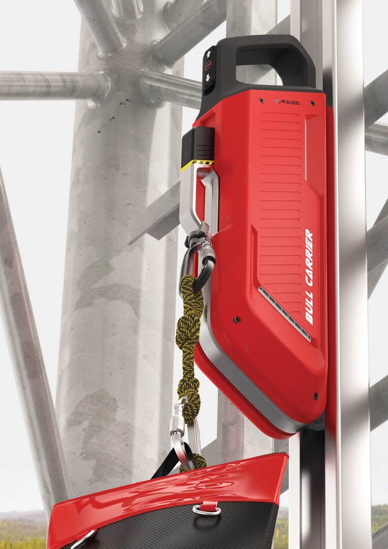 The Bull Carrier concept is a lifting system designed to assist telecom site technicians, or ‘tower dogs’, in managing equipment and tools from the tops of telecom towers. These technicians’ jobs often require them to work in harsh conditions and to lift tools and equipment up towers as tall as 70 meters. In the event of an injury, lowering an injured person is also a difficult and time-consuming process. The Bull Carrier offers better tool and equipment management while reducing work load and enabling faster and safer ascent and descent. It uses a Kog (pin-and-rack-inspired) mechanism for a more controlled mechanism, and the deliver lift is guided by a set of wheels and safety rails to provide stability while in use. The load is secured by a central construction with a protruding holder, and the heavy equipment and/or injured person is lowered using ‘controlled descent’ via motorised braking. Furthermore, the unit comes with a clip-on remote control, allowing workers to control it from a distance. Red Dot Award: Design Concept | Concept | Industry and Tools