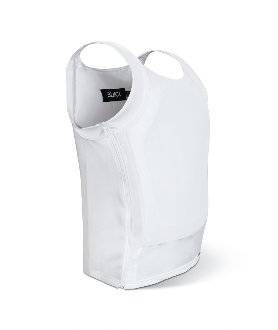 This bulletproof tank top is intended for people who work in the personal protection business and are exposed to dangerous situations. It is lightweight and comes in a discreet white or black, so that it can be worn unobtrusively under any item of clothing. The armour will withstand different types of am-munition and is certified according to body armour class NIJ II. This hypoal-lergenic, deodorised tank top has zips on both sides to make dressing and undressing easier.