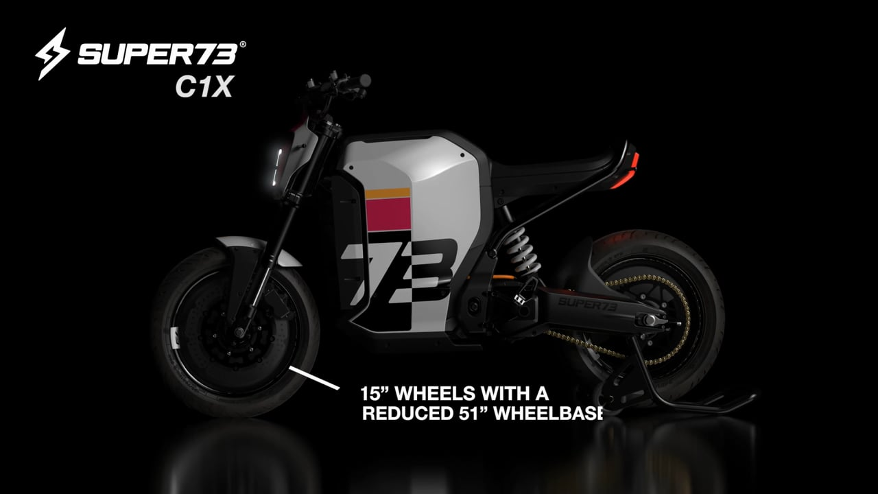 The SUPER73-C1X Concept was designed to redefine the line between e-bike and motorcycle conventions. The C1X is a street-legal concept that will serve as a ‘step-up’ vehicle from the current SUPER73 offerings, achieving motorcycle performance while being significantly smaller and lighter.