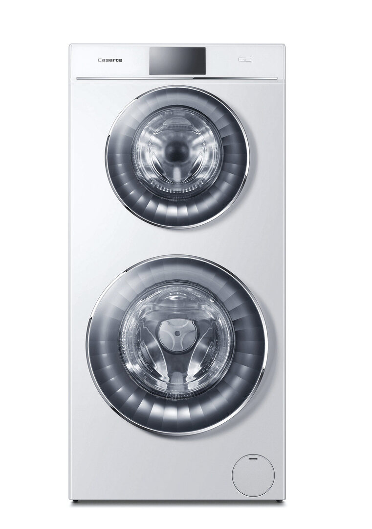 This double-drum washing machine stands out with its tall body, lending it a high-quality appeal. The robust metal frame structure features an integrated injection-mould front panel. The 7” colour LCD touchscreen provides for convenient operation. Below it, there is an additional light for visually indicating the disinfection cycle. The large transparent windows allow to check the state of the washing process at a glance. The integrated handles operate smoothly without users having to bend down.