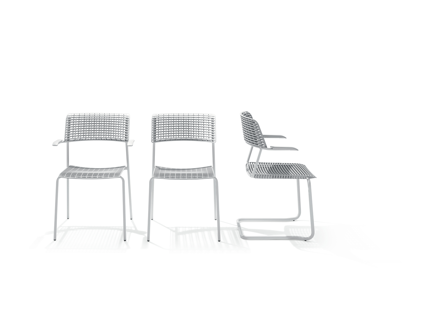 The stackable Cala chair pays homage to the architecture of Spaniard Santiago Calatrava. Its distinctive design is defined by a lattice-like structure that not only creates a certain degree of transparency, but also allows for easy assembly by slotting together the seat and backrest without the need for screws. Recycled polypropylene is used to manufacture the individual components in an injection moulding process. The comfortable piece of seating furniture is suitable for use in offices and public spaces.