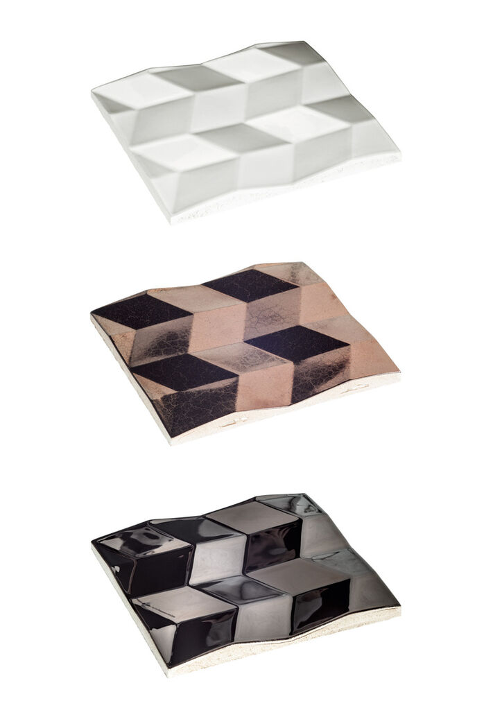 Caldo is a ceramic tile for the decorative design of wall heaters, stoves and other elements of interior design. Traditional technology is here put at the service of creating contemporary forms. This timeless product, which is 100 per cent environmentally friendly, is made of mouldable, fireproof clay and radiates heat in a pleasant way. Depending on the viewing angle and the incidence of light, the three-dimensional surface reveals a multitude of graphic patterns.