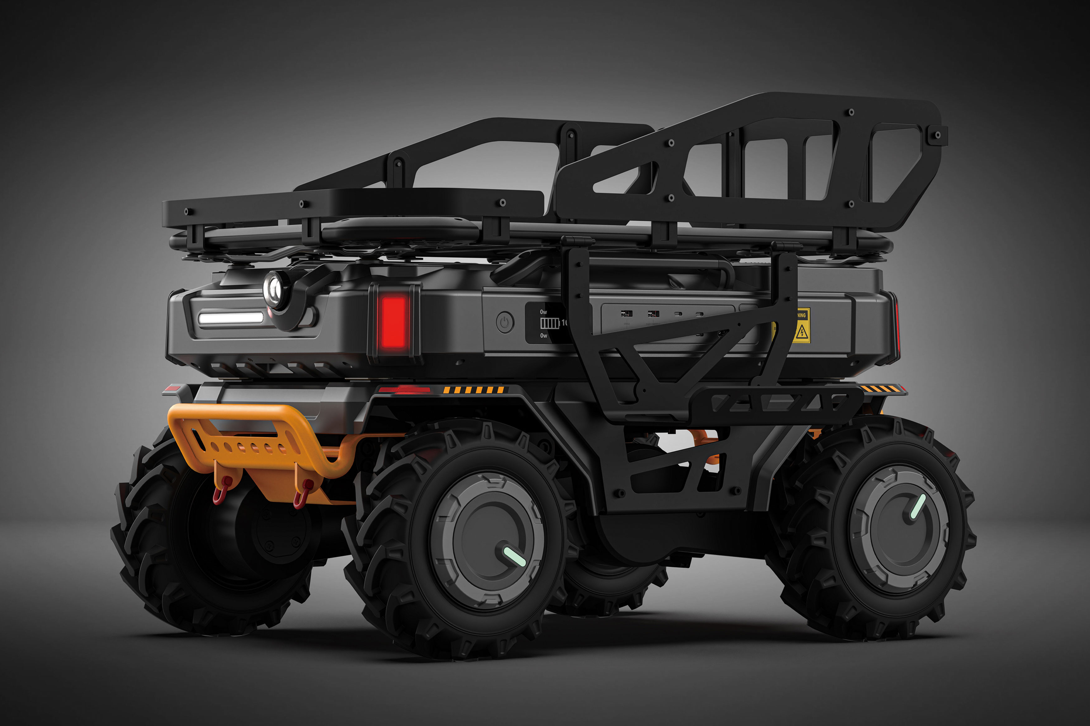 Camping, fishing, and gatherings require substantial outdoor equipment, creating a significant demand for utility carts. This multifunctional cart, integrating outdoor power storage with transport and towing capabilities, can be adapted for various scenarios. The design aims to enhance the convenience of outdoor activities, providing users with a more comprehensive experience. The cart’s modular design features energy, power chassis, and cargo modules, supporting unmanned technology and automatic following capabilities. The all-terrain off-road chassis ensures stability, while users can customise the modules. The vehicle can carry 200 kilogrammes, climb 30-degree slopes, and operate continuously for two hours. The power chassis and cargo platform are replaceable for upgrades. Its sturdy and advanced appearance includes a central energy component with a main battery and detachable batteries, making it an ideal assistant for outdoor adventures. By combining modular design and unmanned technology, this vehicle provides reliable, sustainable power support for outdoor activities, greatly enhancing efficiency and safety in emergency rescue, field research, and outdoor work. The system’s flexibility and scalability allow customisation and upgrades, promoting a long lifecycle and efficient resource use while reducing electronic waste. Red Dot Award: Design Concept | Concept | Outdoor and Camping Equipment