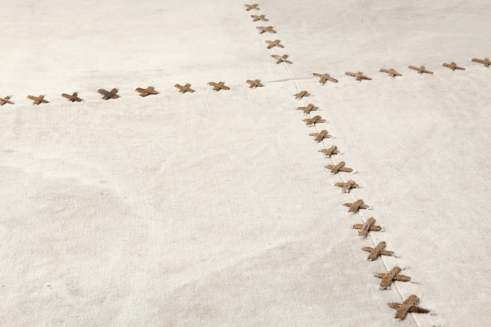 This unusual rug is made of recycled army tents using a leather cross-stitch technique. Each rug is therefore one of a kind, as every scratch on the material represents an unknown, untold story. This rug, part of the Memorial collection, was designed to remember and honour those who gave their lives in war – whichever one it might have been.