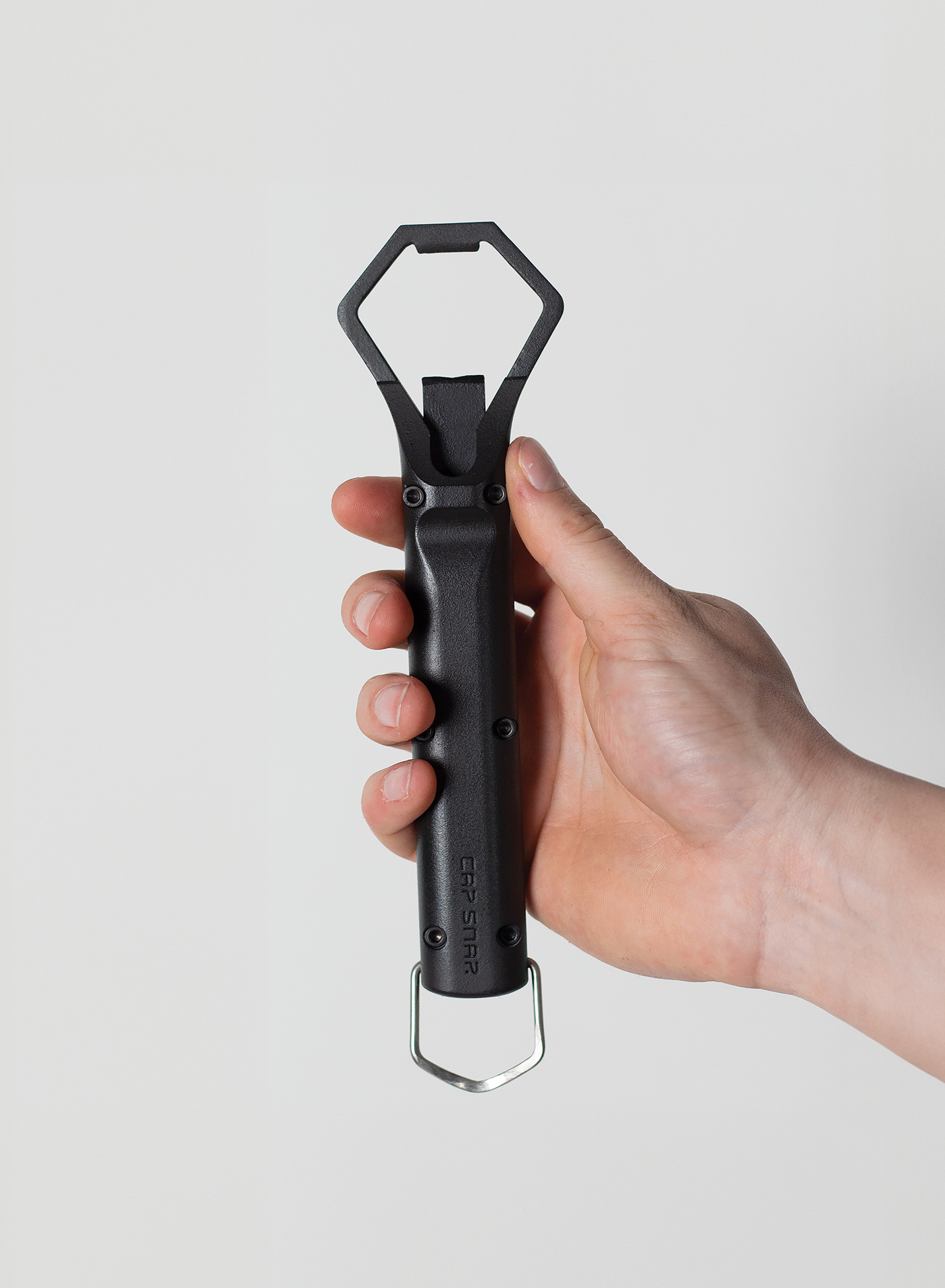 CAP SNAP, a medical multi-tool, separates crimped caps from medication bottles for recycling. It integrates an ampoule breaker, reducing task time from 20-30 seconds to 2-5 seconds, while also improving comfort, usability, and safety. Its design combines two functions into a single linear mechanism, like a bottle opener and adjustable utility knife, with a D ring for safe ampoule breaking. Red Dot Award: Design Concept | Red Dot: Next Gen Award | Concept | Medical Devices and Technology