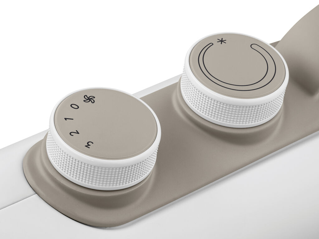 Designed for homes where space is limited and extra heat is needed quickly, the Capsule Fit is a compact fan heater. Its ergonomic handle makes it easy to change the position. The four rubber feet allow the unit to be placed horizontally or vertically, depending on the space available. “The rounded, playful shape and the discreet colour scheme blend in well with different living spaces,” said the jury. The product generates 2,400 watts of power, which can be accessed via three levels and a ventilation function.