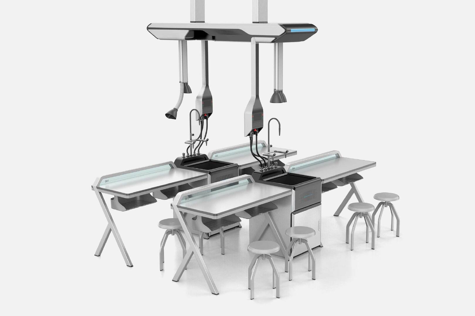 The Capsule Test Stand series is a set of modular and multifunctional units that allows students to conduct science experiments in the classroom. Its imaginative design is inspired by the space capsule, a form that encourages students' curiosity and exploration while meeting the needs of multidisciplinary teaching for subjects like physics and chemistry. The innovative hoisting can be rotated and expanded at multiple angles, or increased or decreased as needed, without affecting the appearance’s integrity. The table can be arranged and combined according to demand thanks to the large area filter drainage network design of the water tank, which is helpful in keeping the environment clean and refreshed. Red Dot Award: Design Concept | Ready to Launch | Education