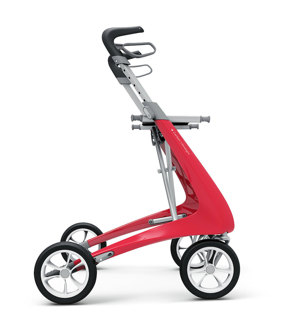 With a streamlined shape that reflects forward thrust and vitality, the Carbon Ultralight reinterprets the design principles of a rollator.