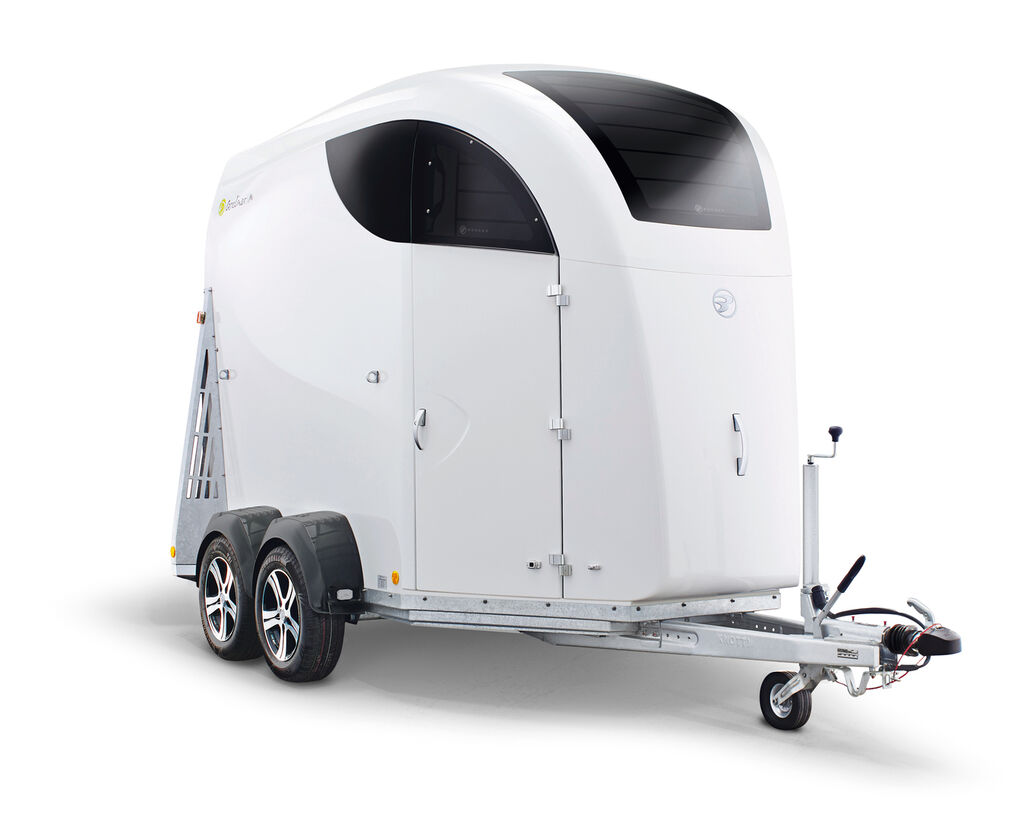 The Careliner is a completely re-designed horse trailer of polyester construction which, due to a very high dividing line between the top section and the body, allows for various innovations, among them a body-sized entrance door and flush mounted windows. The generously dimensioned interior with LED lighting offers ample headroom for the horses and space for up to three saddles. In the dark, an innovative new rear light assists with manoeuvring as well as loading and unloading the horses.