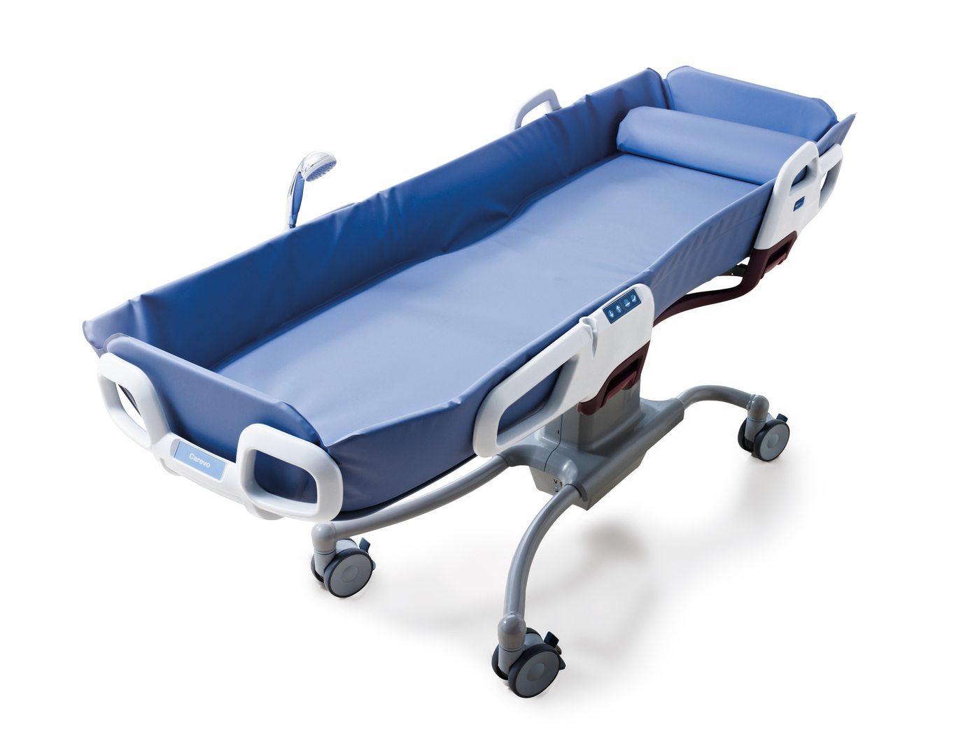 The approachable appearance of the Carevo shower trolley is the expression of a concept that puts human needs at the centre of its design. It offers both patients and carers a high degree of safety. This shower trolley is easy to clean and pleasant to handle. Built-in switches, simple methods of adjustment and a shape that is adapted to its users make it possible for showers to be carried out gently.