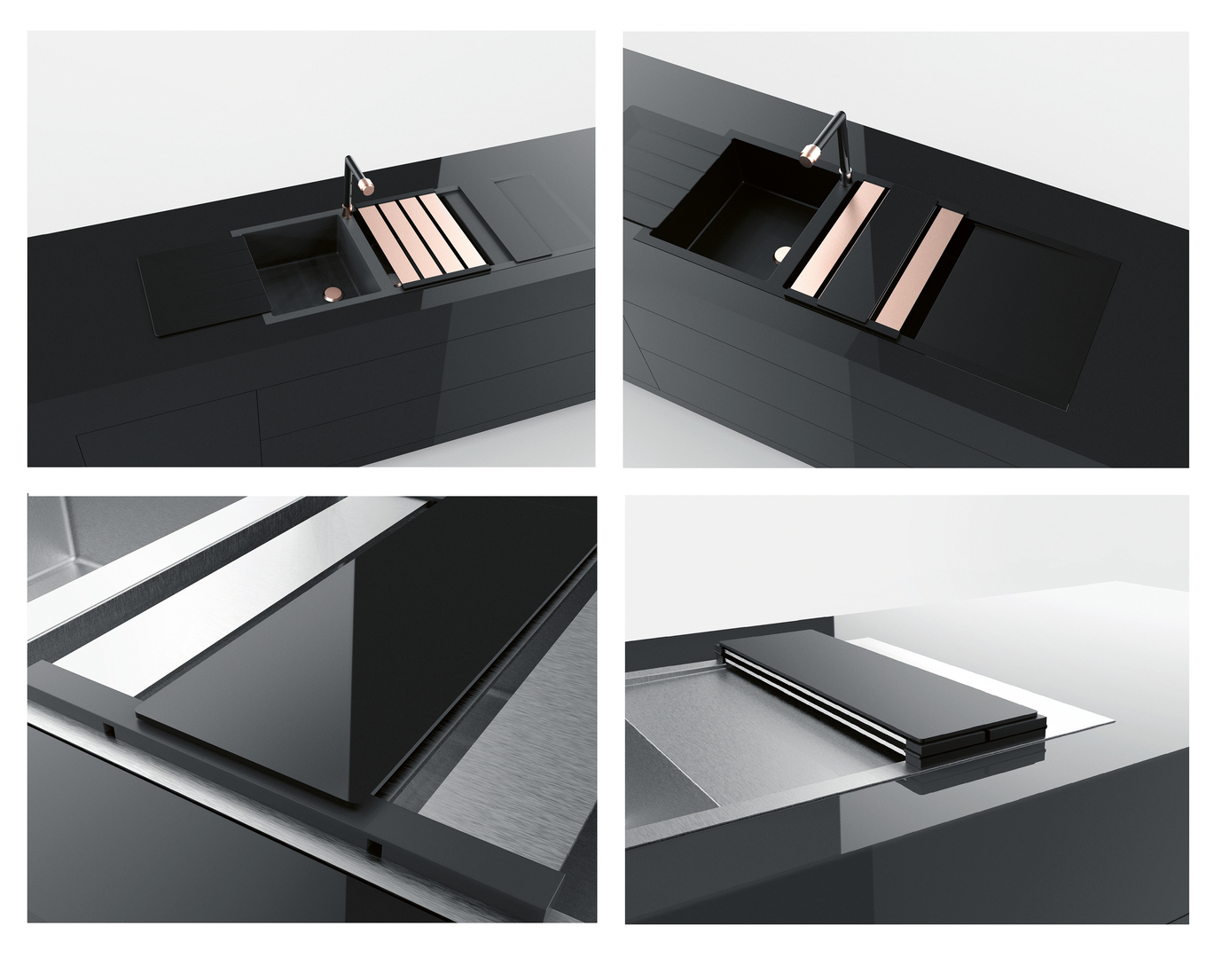 The CARMA rinsing rack owes its appealing aesthetics to the interplay of high-quality metal surfaces with clear lines and form-fitting structures.