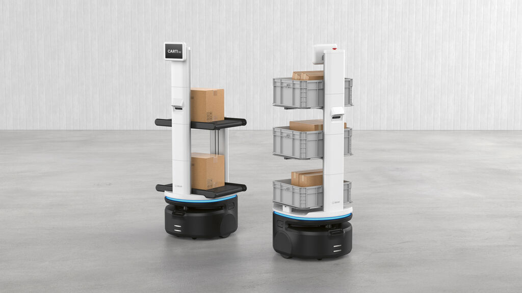 Carti 100 is an autonomous mobile robot that optimises material logistics in warehouses or retail stores. Its modular design allows for various attachments, such as adjustable shelves or conveyor belts. Precision navigation, obstacle detection and multi-robot coordination increase efficiency and reduce the workload. Automatic charging technology ensures uninterrupted operation. Carti 100 integrates seamlessly into existing infrastructures without costly conversions.