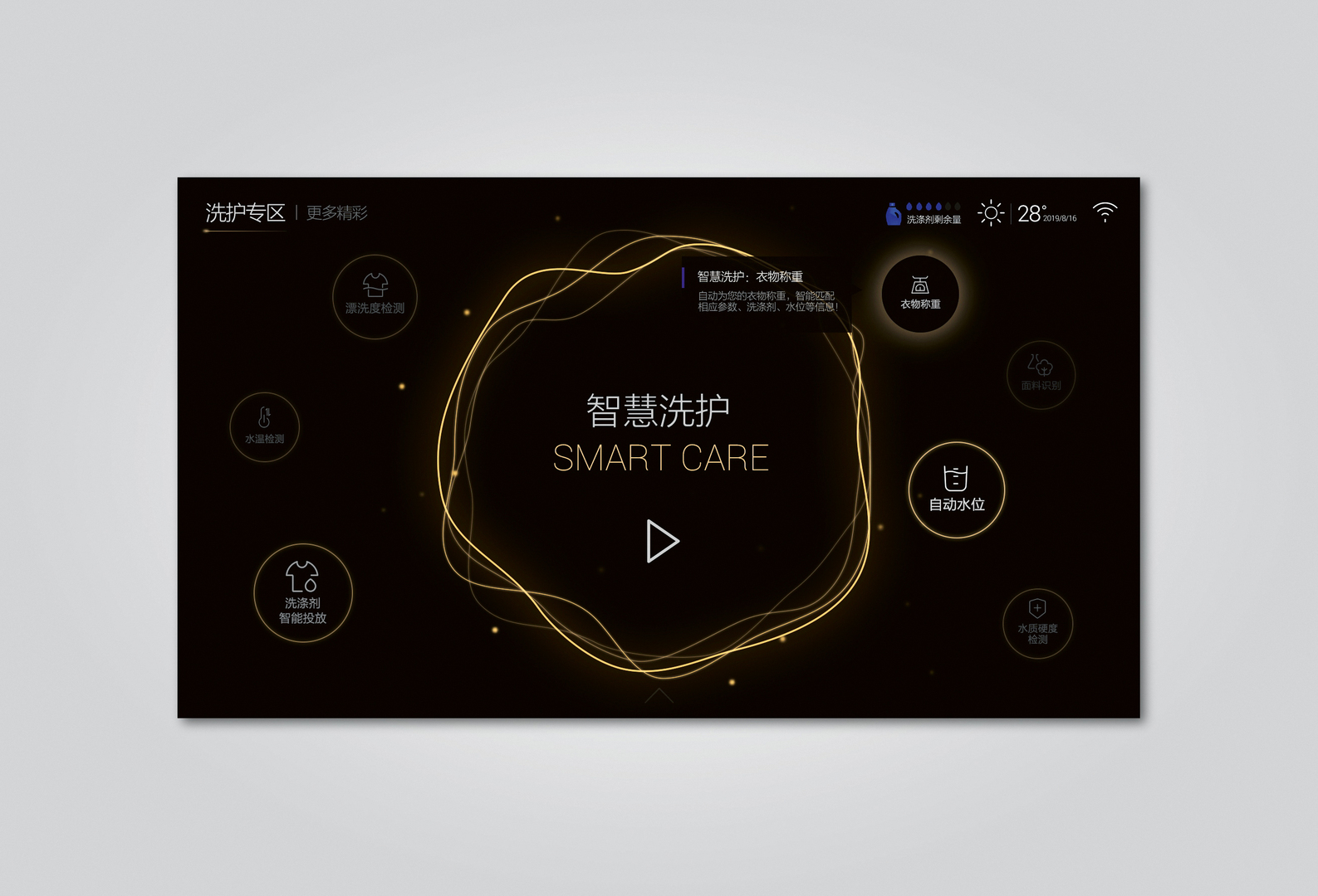The interface of the Casarte Pulsator washing machine communicates the key message of “wisdom washing”. The design, which features a linear element, achieves a dynamic effect. The intelligently configured display indicates the current washing status and provides users with all information in a clear manner. The visualisation of the different washing programs, with its memorable stereo effect, offers an intensive experience, giving users a familiar feeling and facilitating the learning process.