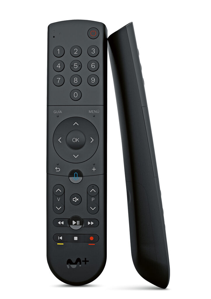 The Caster remote control was designed for use with Telefonica’s Movistar and TV service. Important control elements are the centrally arranged D-pad area and the strikingly placed symbol for the integrated voice command function that lets the user interact with Aura, Movistar’s virtual assistant. On the reverse side of the remote control, a soft coating provides additional comfort and a good grip, which enables particularly secure handling. The most frequently used buttons on the remote control light up when the device is picked up in a dimly lit room.
