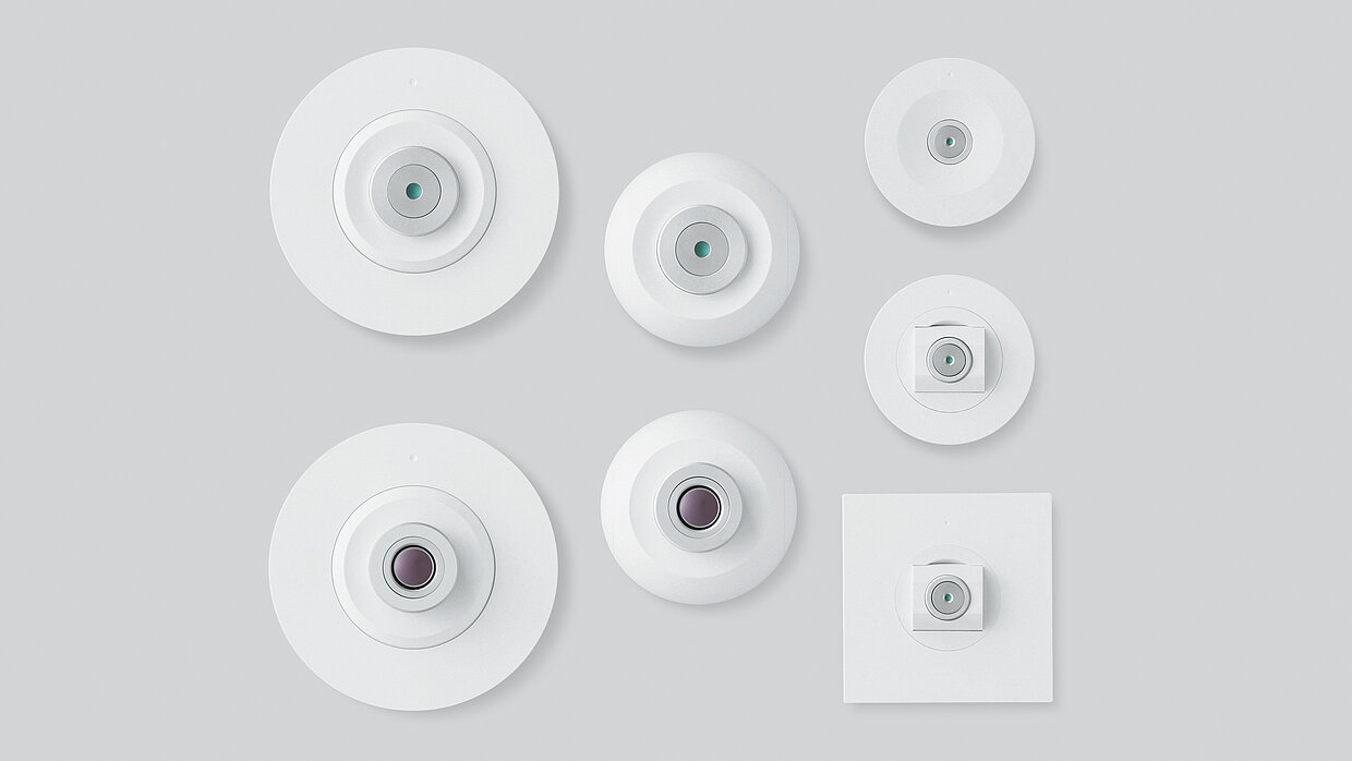 The circular temperature sensor is designed to control air conditioning systems in residential buildings or office complexes and ensures balanced temperature regulation. With its flat construction and a diameter of only 40 mm, the sensor blends in seamlessly with the environment – even in large numbers – without disturbing the aesthetics of the premises. The one-touch installation structure is designed for easy mounting of the product to the ceiling.