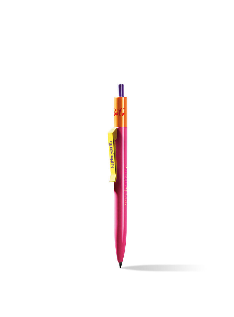 The innovative design of the Centrix allows customising the ballpoint pen with a variety of branding options. Not only the wide clip, which is positioned almost in the centre of the pen, but also the barrel and the upper part of the pen offer the possibility of hosting compelling advertising messages and logos. A wide range of vibrant colours is available for the “basic” version as well as for the “clear” version with transparent barrel and upper part. The Centrix is equipped with a large capacity refill in blue or black for long-lasting and pleasant writing.