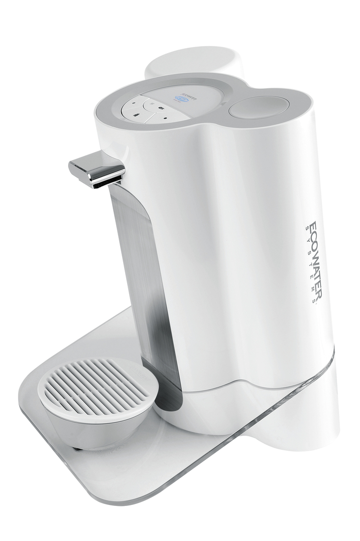 This compact water purifier is directly connected to a water supply, always providing safe drinking water. Slightly tilted forward, its design sets it apart from similar products. The cylindrical forms host a patented filtration system which dispenses ambient and hot water. It features single-touch dispensing and the unique filter design makes replacement intuitive. The standard model comes in glossy white. The premium model has a metallic red body and comes with temperature control.