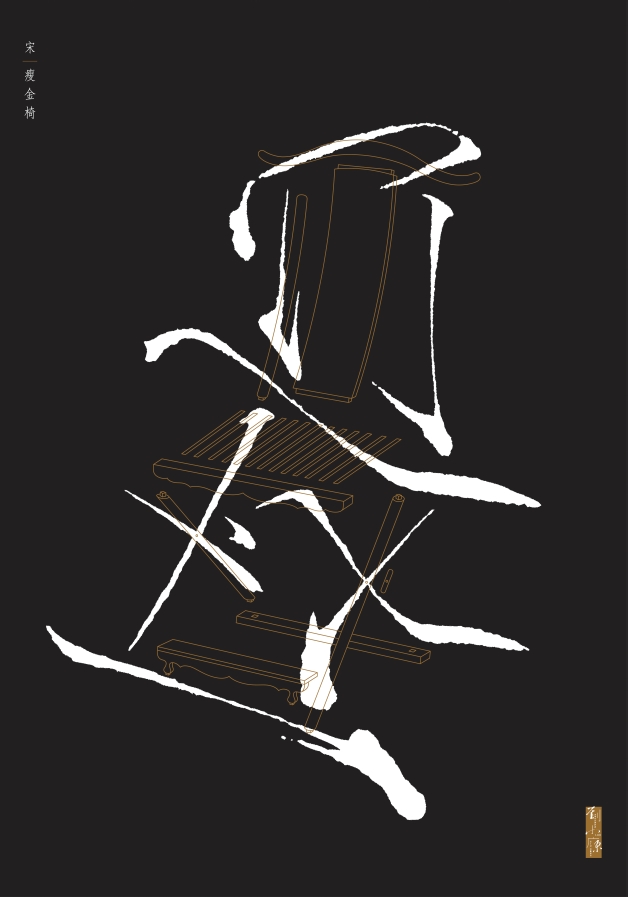 »This poster series distinguishes itself through the skilful merging of Chinese roots with personal taste and the combination of typography with construction techniques. Both forms of expression enter into a kind of dialogue, alternately tracing the lines of the characters or those of the chairs. The actual coalescence effused is not only about beauty but also has a deeper meaning, inspired by Ming Dynasty aesthetics.«