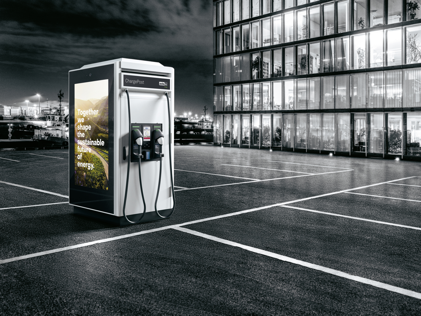 The ChargePost fast charging station impresses with its uncompromising design and its solid performance, while also offering high-quality advertising space.