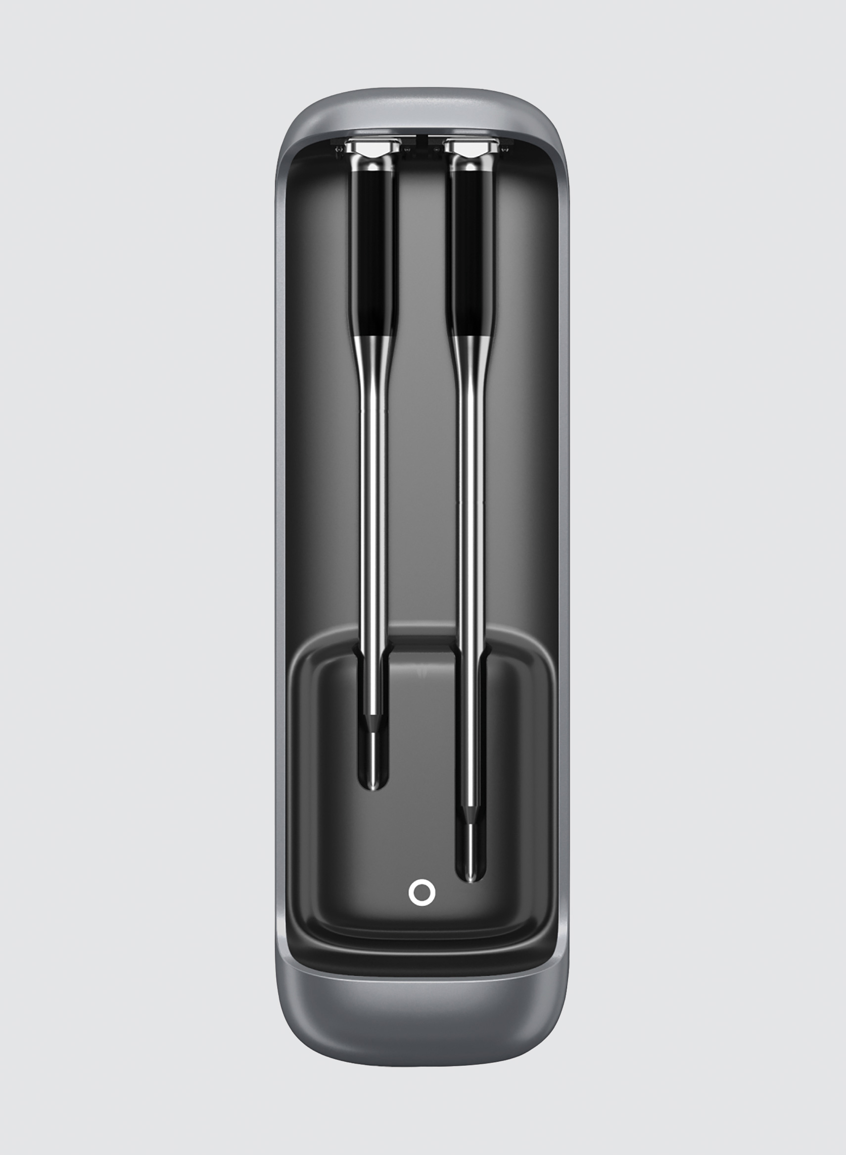 ChefSync is an advanced wireless thermometer designed for grilling enthusiasts who value precision, efficiency, and convenience. Its dual high-precision temperature probes, respectively optimised for smaller and larger cuts, ensure accurate and consistent temperature readings for various meat types. A real-time temperature monitoring and early alarm system provides timely notifications to prevent overcooking, seamlessly integrating ease of use with intelligent design.