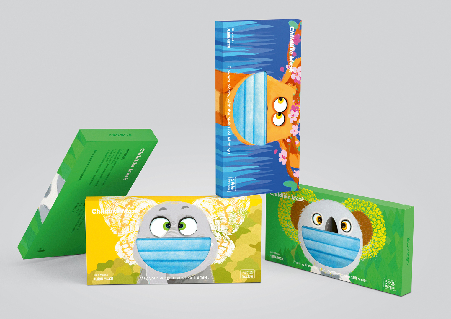 Infection prevention has become an important issue with the rapid spread of COVID-19. Since children need protection as well as adults do, this product line features medical-grade masks for kids. Three packaging designs indicate different mask sizes. The colourful boxes with animal motifs are punched out at the front, showing some of the mask and inviting consumers to take hold of the product. Once the last mask has been used, users are rewarded with a smiling animal face inside the package. Moreover, each pack includes a motivational phrase to help children overcome their resistance to wearing a mask.