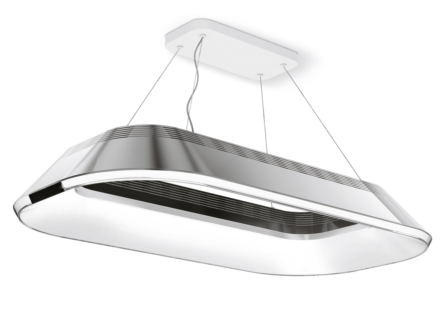 The innovative CHiQ Airloop air purifier is suspended from the ceiling, thus not taking up any valuable space. Its striking loop construction additionally includes a security camera. With its elegant and unobtrusive design, the CHiQ Airloop blends well into different environments. The device can be operated using a wall-mounted control panel or directly via a smartphone.