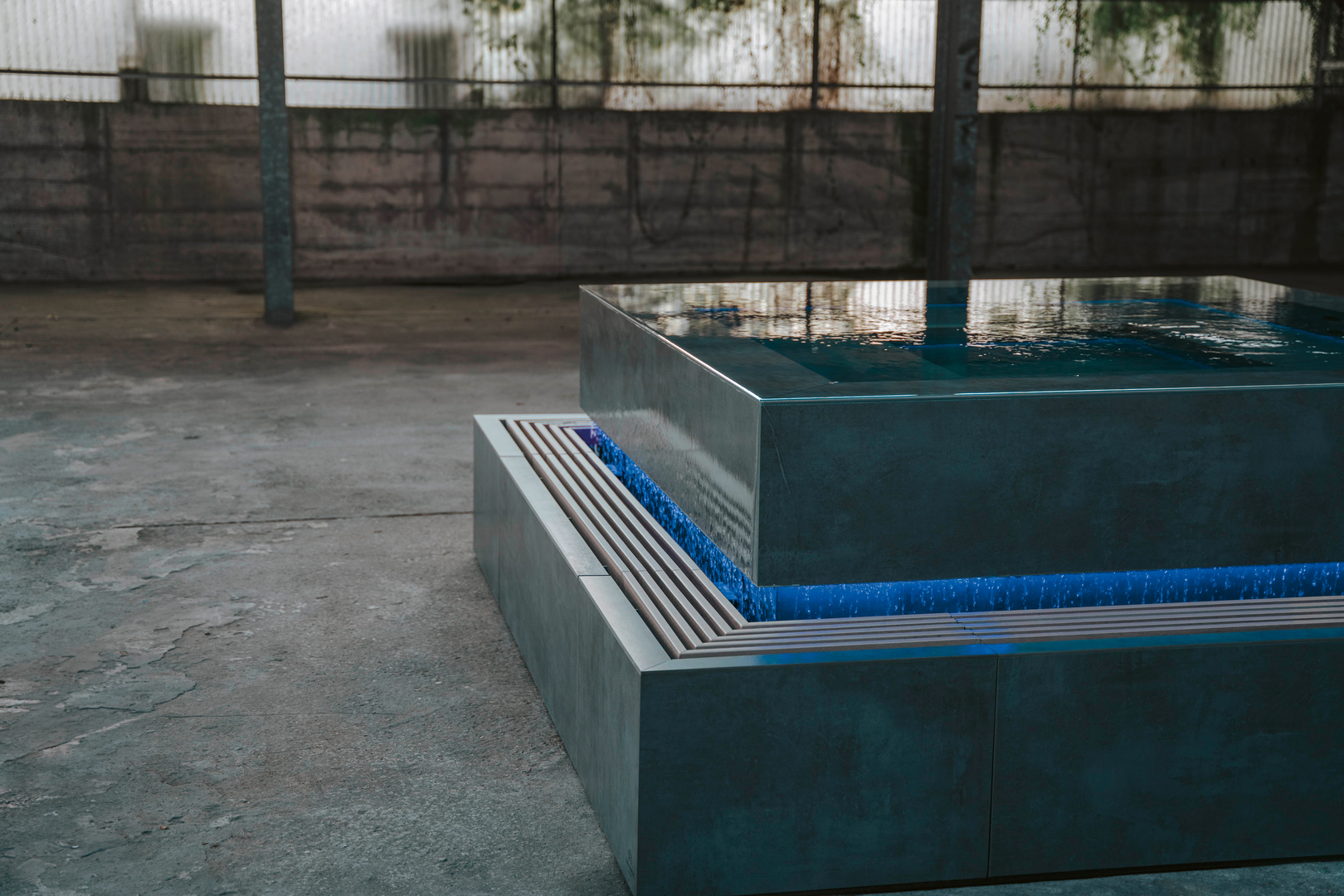 With the Infinity Whirlpool Chronos Cube, modern manufacturing techniques and traditional craftsmanship result in impressively minimalist aesthetics. The large format stone tiles, together with the precise lines, create a clear, straightforward appearance. The interior, which foregoes unnecessary details, is a successful synthesis of functionality and design reduction. The whirlpool features a circumferential waterfall and continuous LED lighting, which provide an appealing play of colours.