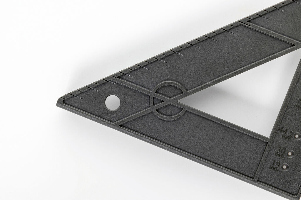 This guide ruler for hand-held circular saws, made of scratch-resistant, robust polycarbonate, was specially developed for DIY beginners. It facilitates precise cuts on square timber – the most common material in DIY. It allows horizontal (90 degrees) and vertical (45 degrees) cuts and fits into standard toolboxes thanks to its compact size. An integrated clamping point makes it easy to secure the workpiece. Glossy coated markings improve readability, while an additional guide makes marking easier.