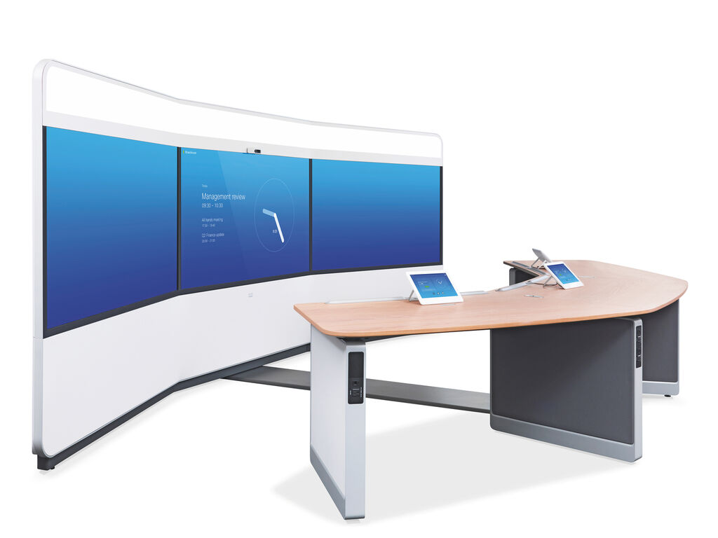 The Cisco TelePresence IX5000 fully integrated conferencing system convinces with its consistently iconic design. It showcases an elegant appearance and offers conference participants an entirely new conferencing experience. Comfort pairs with details that are manifested in an outstandingly intelligent way. Particularly worth mentioning is how incoming calls activate the LED lighting hidden behind textile to perfectly illumin- ate the conferencing environment.