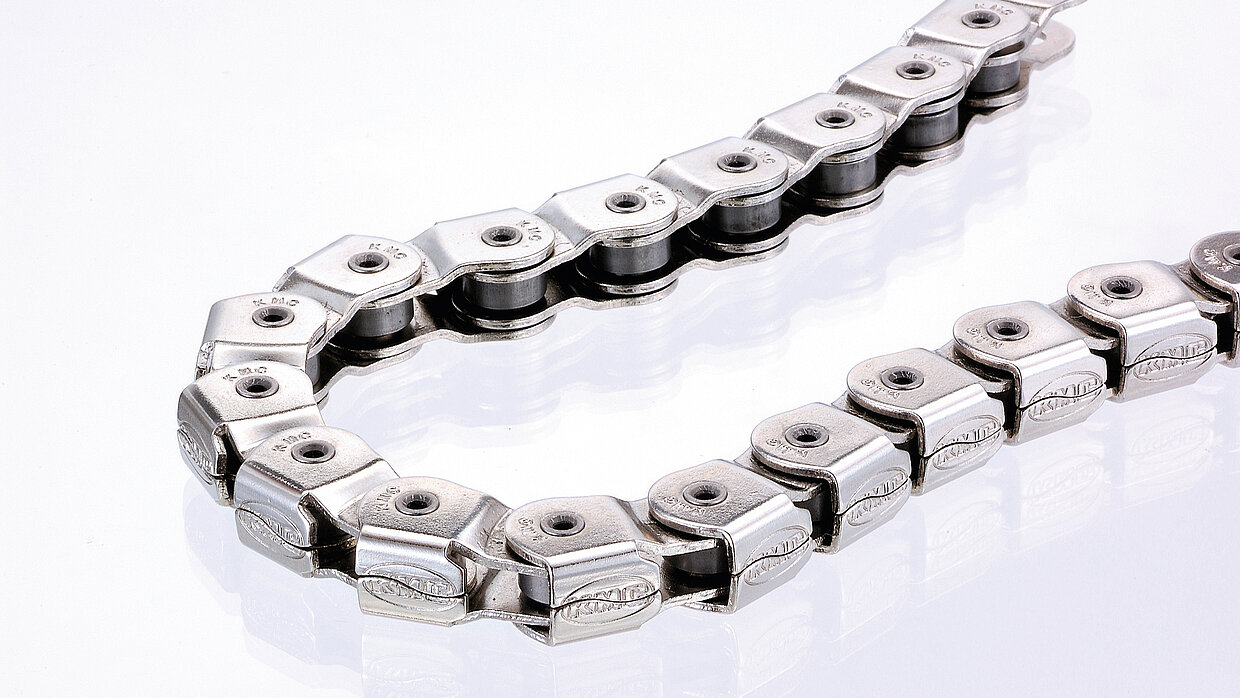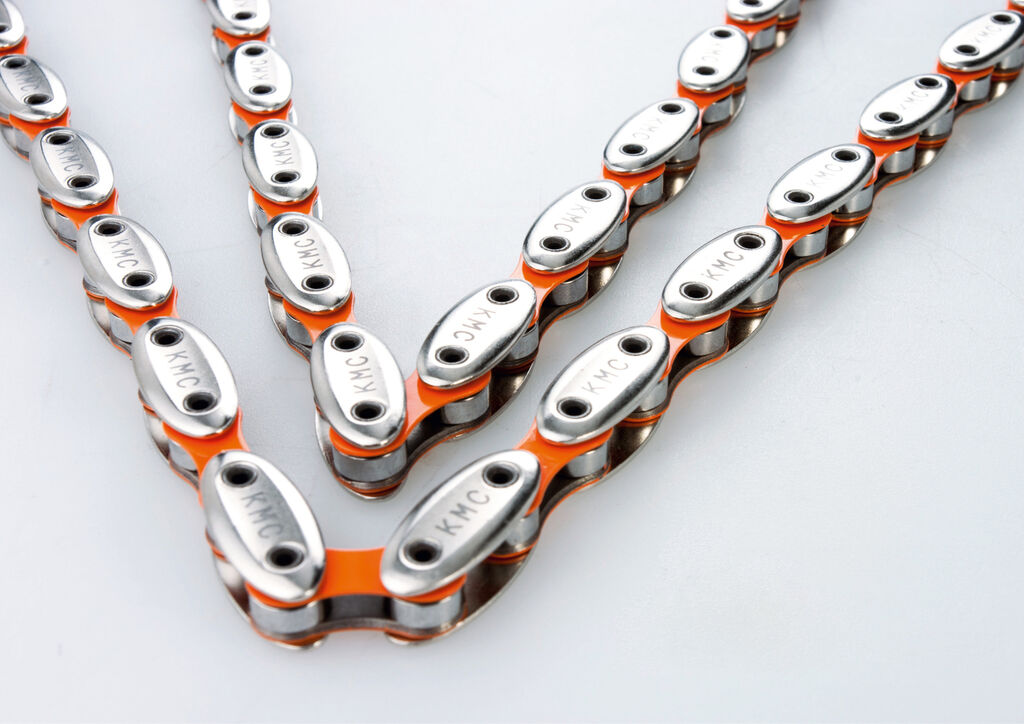 The City Hunter bicycle chain was developed with the aims of toughness, safety, comfort and low maintenance. Unique oval-shaped outer plates guarantee direct force transmission, while StretchProof Hollow Pins provide for a low weight at optimal durability. Nickel outer plates and shiny orange-coated inner plates protect against rust and reduce maintenance frequency. Furthermore, the conspicuous glowing orange colour enhances rider safety.