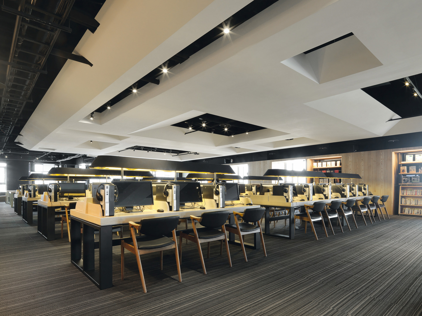 E-learning offers many people the opportunity to gain professional skills and knowledge online. This open-plan learning environment was developed to promote cloud-based educational software. Firstly, it guarantees functionality as a training room through the use of long rows of technically well-equipped workplaces. Secondly, it offers a very flexible environment which allows students to learn in a relaxed atmosphere.