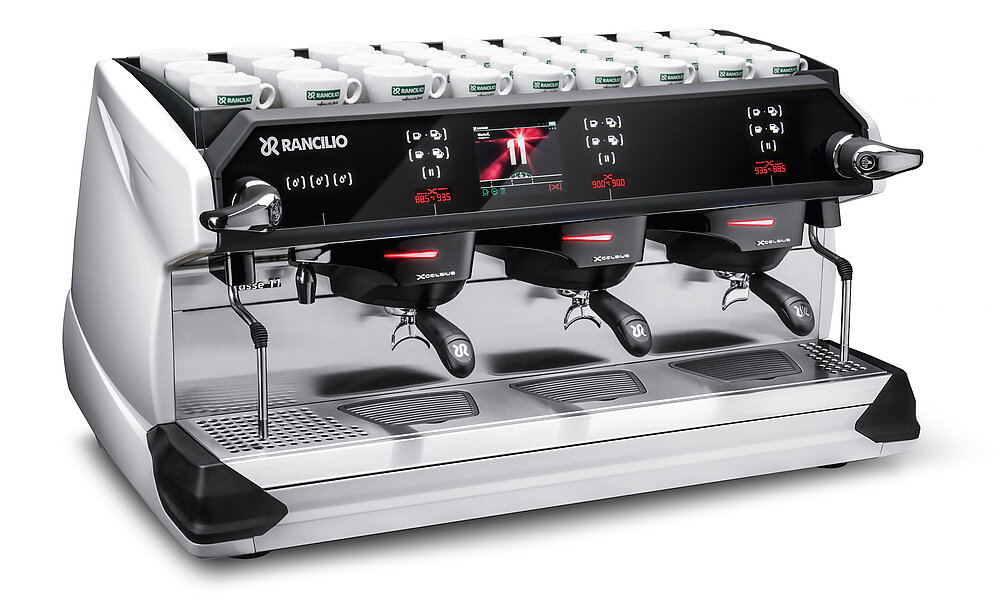 The striking design feature of this professional espresso machine is its control panel of tempered glass with multi-touch technology, inspired by smartphone user interfaces. The symbols are clear and user-friendly. The machine can also be operated via a special App and QR codes. The form of the brew groups facilitates work with the filter holder. LEDs are integrated in the covers to display the operating phases of the machine.